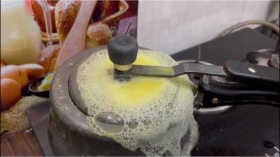 If too much water is added to the pressure cooker for cooking, always add the right amount of water as the pressure will come out with a whistle after heating. After adding more water, the water comes out